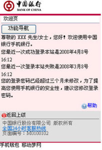 已開通中行網銀理財版或貴賓版的用戶,可以通過手機登錄“中銀掌上行”wap網址mbs.boc.cn,選擇自助注冊功能,輸入身份證件信息、借記卡號及其電話銀行密碼,驗證動態口令,設置“中銀掌上行”登錄密碼,即可完成注冊,立刻享用“中銀掌上行”理財版、貴賓版服務(“中銀掌上行”版本與客戶使用的中行網銀版本一致)。