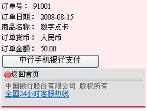 您在我行手機商城或手機購物網站選定商品,請選擇中行手機支付。