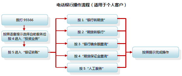 ·銀期轉賬:為您提供本人借記卡/單位銀行結算賬戶與期貨保證金賬戶之間資金的實時劃轉,您可通過我們的網上銀行、手機銀行、電話銀行以及期貨公司的交易渠道辦理轉賬。機構投資者使用網上銀行進行轉賬。