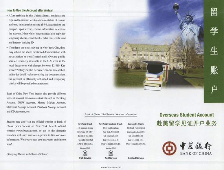 1045 Avenue of the Americas, New York, NY 10018 USA | 電話:1-212-935-3101 傳真:1-212-371-7406 郵箱:overseastudent@bocusa.com 網(wǎng)點(diǎn)詳情 >> |
